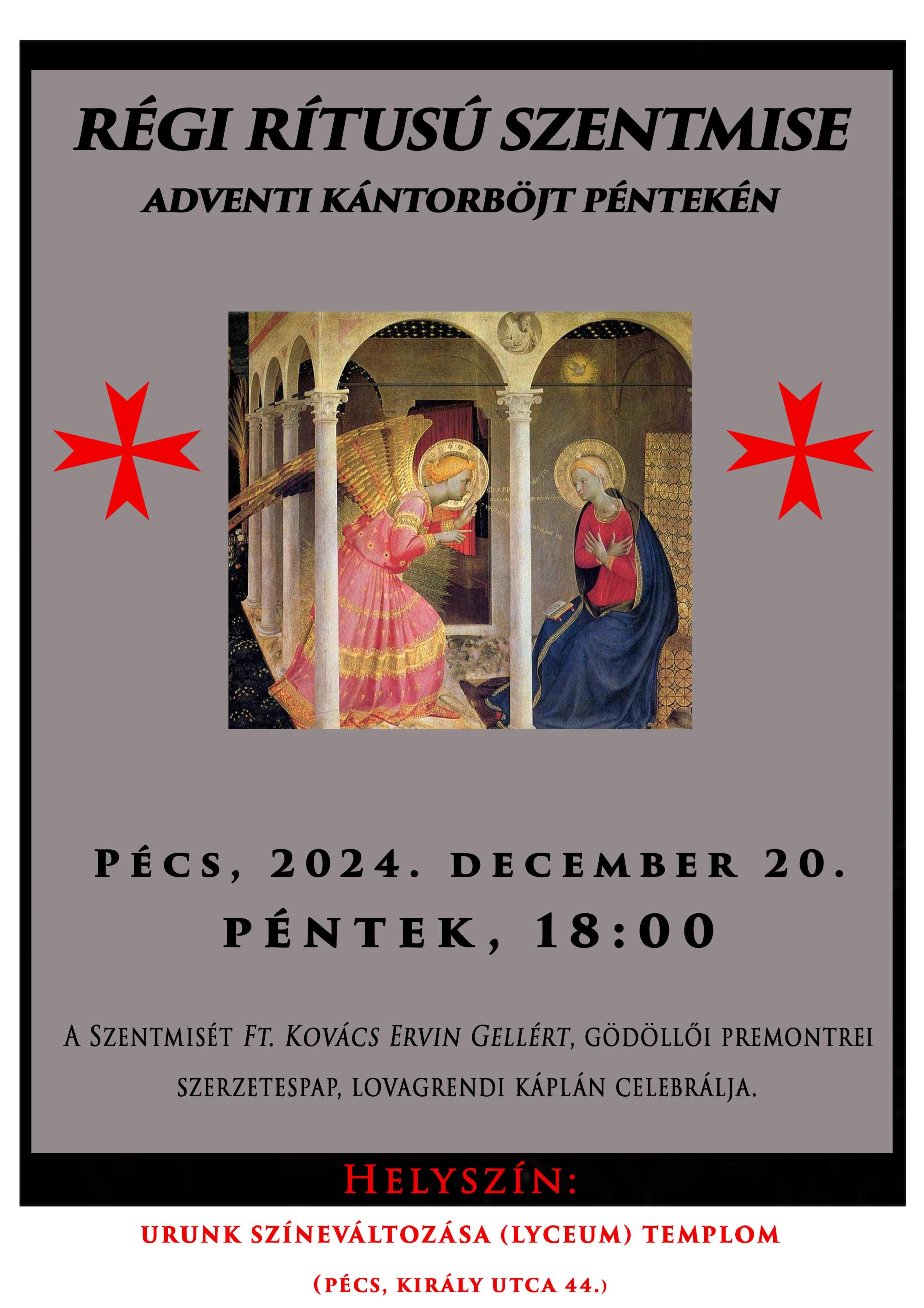 Régi rítusú szentmise Pécsett 2024. december 20-án
